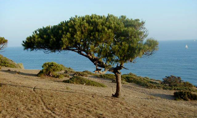 The top of the cliff is colonized by a pine forest with an undergrowth of Mediterranean scrub. The forest is the result of reforestation carried out at the end of last century. There are some varieties of Aleppo pine mixed with juniper bushes and shrubs on the edges of the cliffs. They are packed tightly together in order to withstand the strong coastal winds. Nesting birds on the cliff are mainly composed of greenfinches, goldfinches, chaffinches, tits and the crested tit. There is also a pair of peregrine falcons and another pair of kestrels.