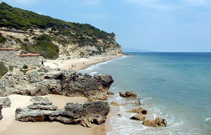 One of the most impressive sights in the park is the Tajo de Barbate; The most notorious cliff on the Andalusian Atlantic coast. This coastal cliff has elevation points of more than 100 m above sea level. The Torre del Tajo (Tajo Tower) is situated at these high altitudes and it offers spectacular views over the blue waters of the Strait. At the foot of the escarpment, in the water, there are several big blocks created by the erosive action of the waves, and there are also smaller sandy deposits which are covered during high tides.