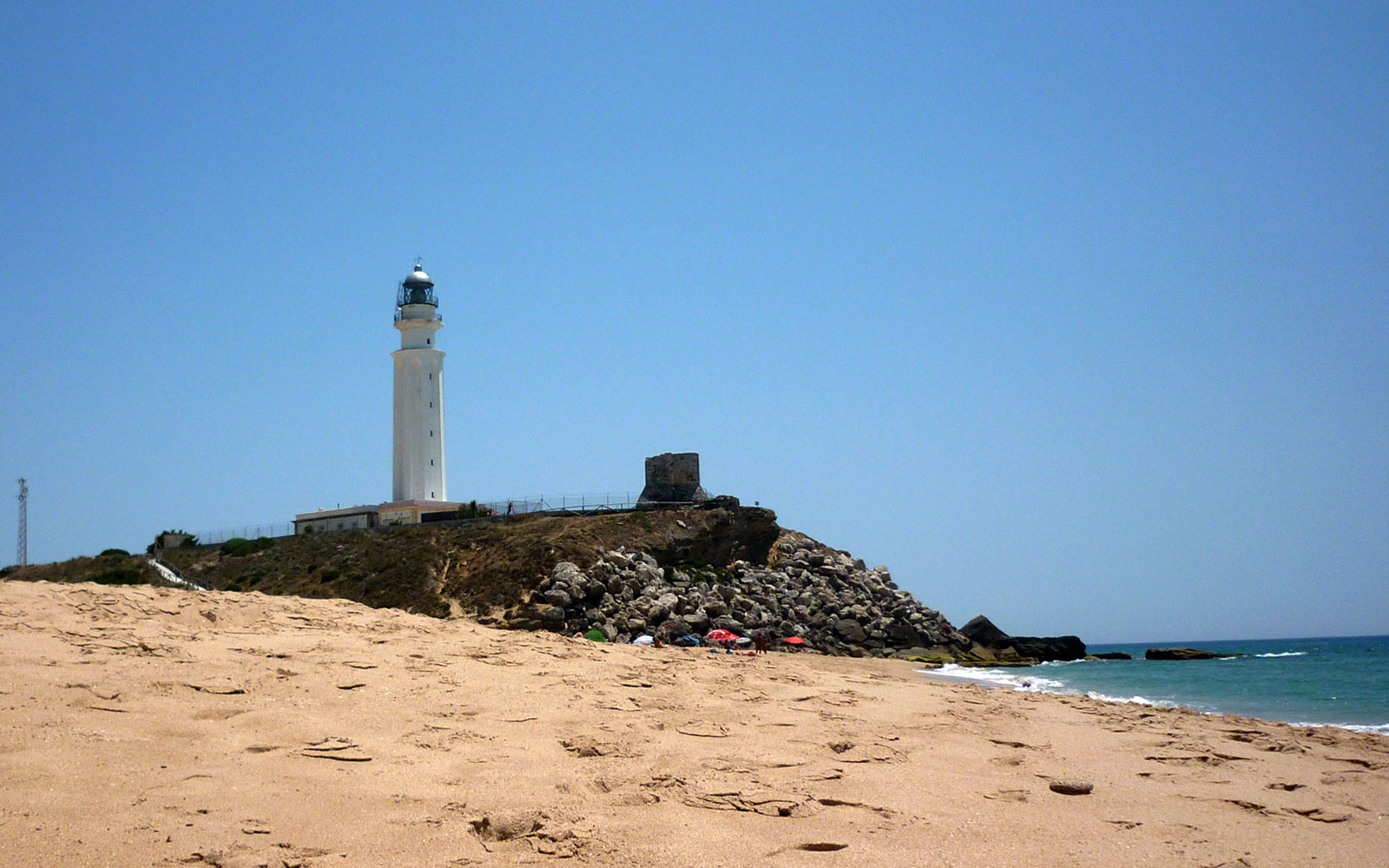 A un poco más de 1 km desde la pedanía de los Caños de Meca hacia el norte, en dirección de Conil de la Frontera se encuentra el faro de Trafalgar.